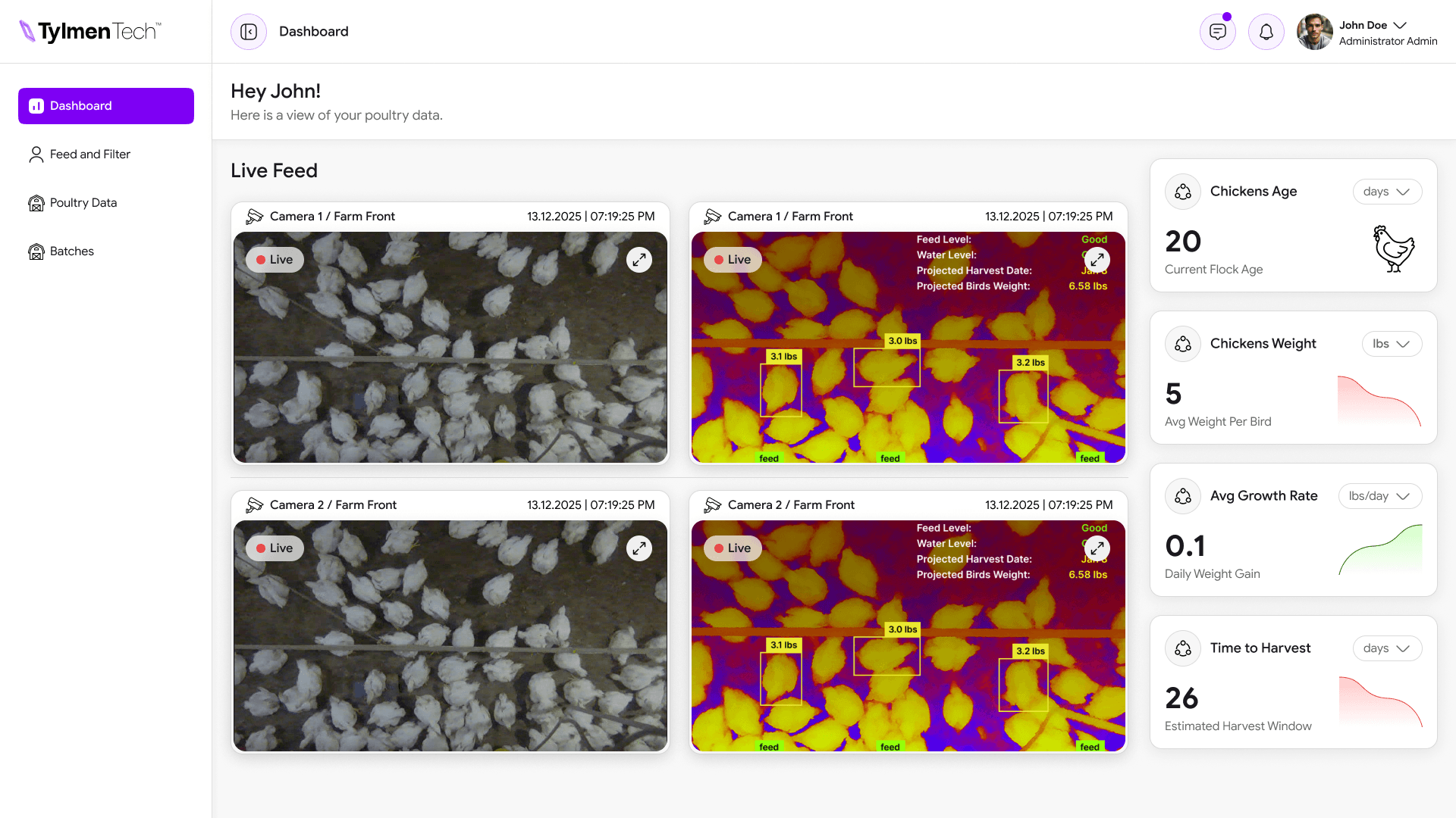 A unified poultry intelligence platform using AI and sensing ecosystem to optimize flock performance and processing yield in real time.